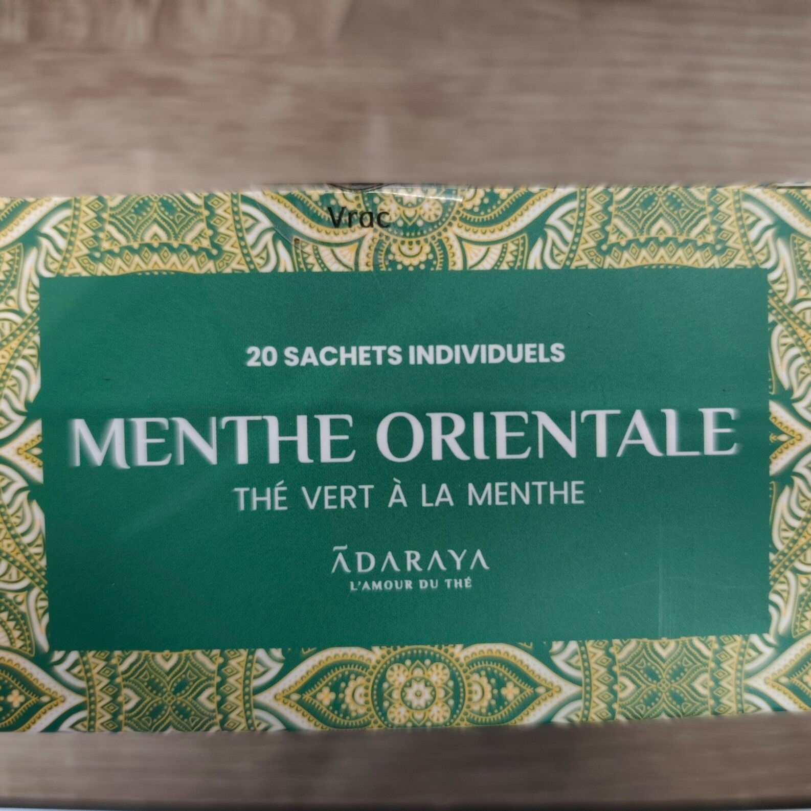 Le thé vert à la menthe est au Maroc une véritable institution, un art de vivre. Il faut reconnaitre que les marocains savent le préparer ! Notre thé vert menthe orientale est un gunpowder, des feuilles roulées au parfum intense. Vous trouverez 20 sachets individuels dans une jolie boîte.